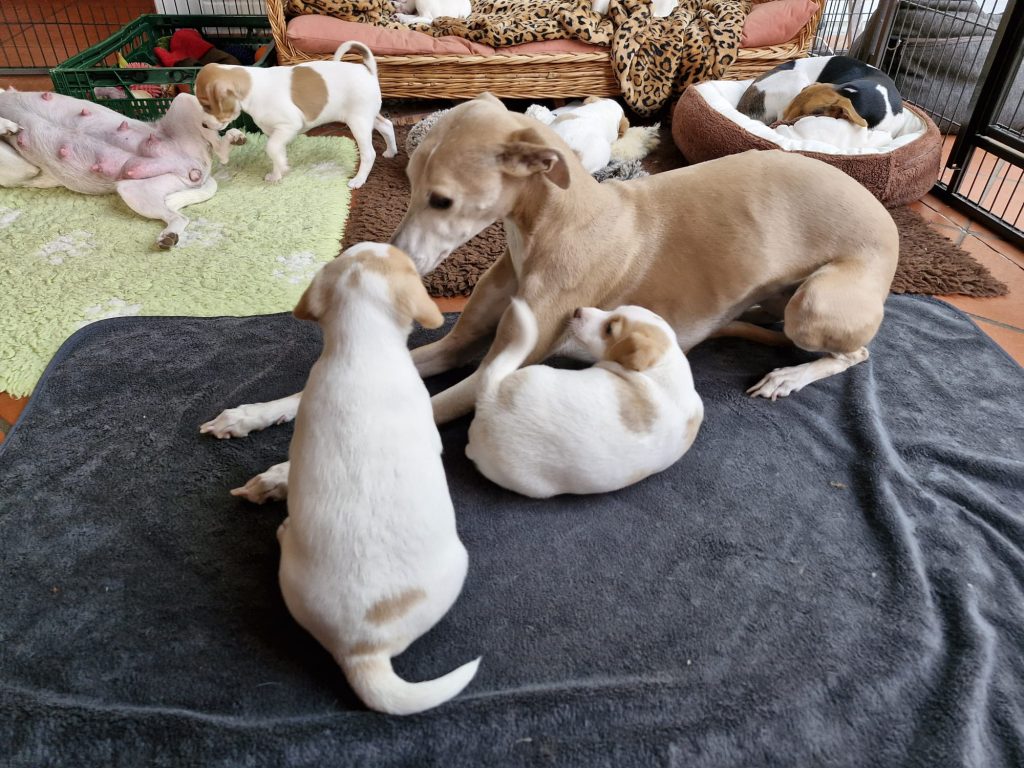Auch wenn Wildern nicht mehr erwünscht ist, Wärmflasche sind die Whippets noch immer gern. Unsere Welpen sind genau solche Allrounder. Überspitzt ausgedrückt sind sie in Personalunion sowohl Begleiter, als auch Sportler, Therapiehund und Wärmflasche – sie wollen sehr eng mit ihrem Menschen sein. Wer weder Couch noch Bett mit einem Hund bereit ist zu teilen, mache bitte einen großen Bogen um Whippets!