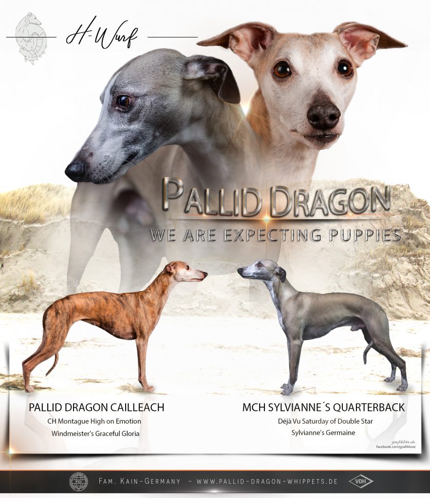 Der Pallid Dragon D Wurf kam am 30.05.2016 zur Welt. Arnaud hat mich schwer beeindruckt, weil er als aktiver Coursinghund, abseits des Felde wenn andere Hunde hetzen, vollkommen cool neben seiner Besitzerin herlief. Er basiert auf Hunden des Kennels vom Kleinen Berg, alten S&L Blutlinien.
