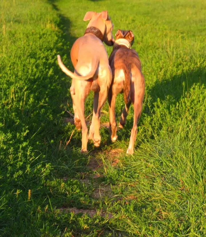 Die Welpen entstanden ohne viel Federlesens im Vorfeld – kein Vergleich mit der Verpaarung von Skys Eltern, wo Éowyn erst am Tag 20 (!) bereit gewesen war. Nach vollzogenem Deckakt lagen die Hunde gemeinsam auf einer Gartenliege und putzten sich gegenseitig. Einfach schön, wenn man den Hunden auch diese Erfahrung gönnt, und sie nicht gleich wieder trennt.