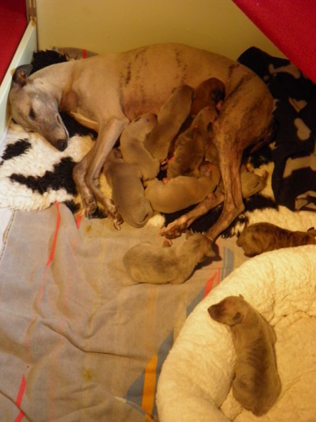 Der B-Wurf ist am 18.02.13 gelandet, Mutter und Kinder sind wohlauf