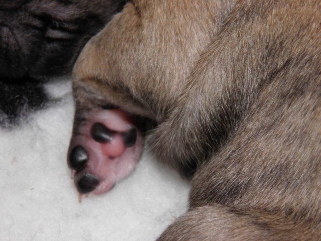 5.2.2011 die Nase ist bereits komplett pigmentiert, bei den Ballen ist es noch bunt