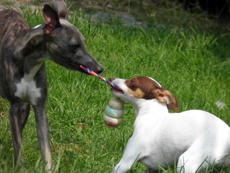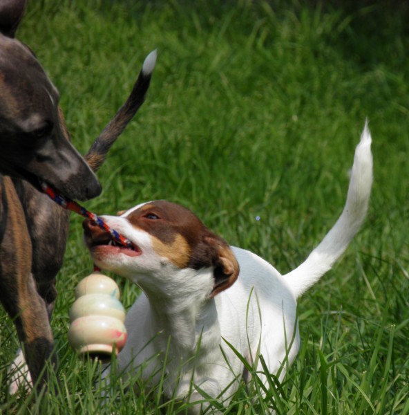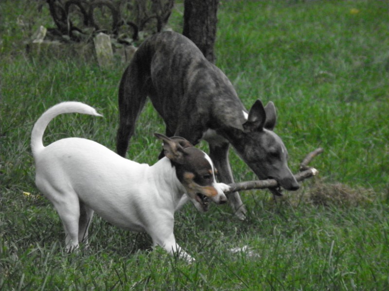 Pepita ist wirklich ein Goldstück, sie passt sich an, schreckt sich auch nicht vor herunterfallenden Aluschüsseln (zumindest ist das hier so) und ist in ihrem Verhalten anderen Hunden gegenüber sehr klar. Sie macht Rennspiele mit aber wenn es ihr zuviel wird, quietscht sie schon einmal vorsorglich und sucht Schutz bei ihrem Menschen (oder einem Zweibeiner der am Nächsten dran steht).
