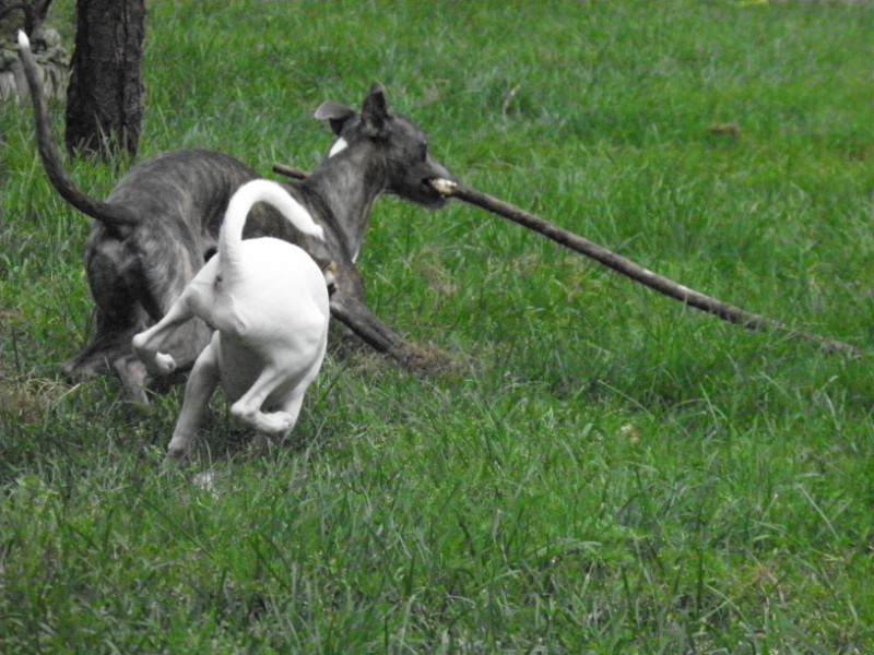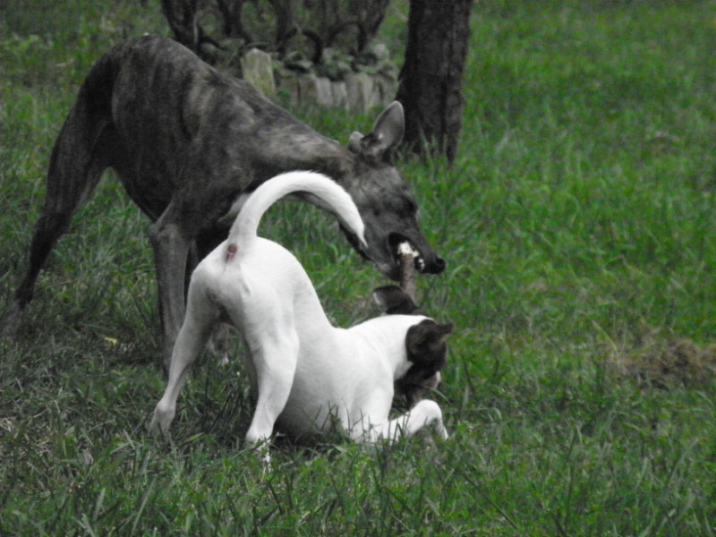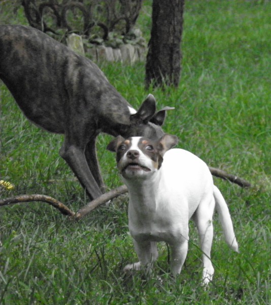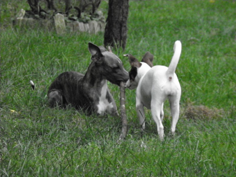 Gestern ist nicht viel passiert, Rosaura wird den anderen Hunden gegenüber immer mutiger und spielt sie auch draußen an - Gloria steigt gleich drauf ein, während Sheka ja noch immer mit ihrem Hormonhaushalt beschäftigt ist... Dabei sind auch ein paar schöne (Motiv, nicht die Qualität) Bilder entstanden.