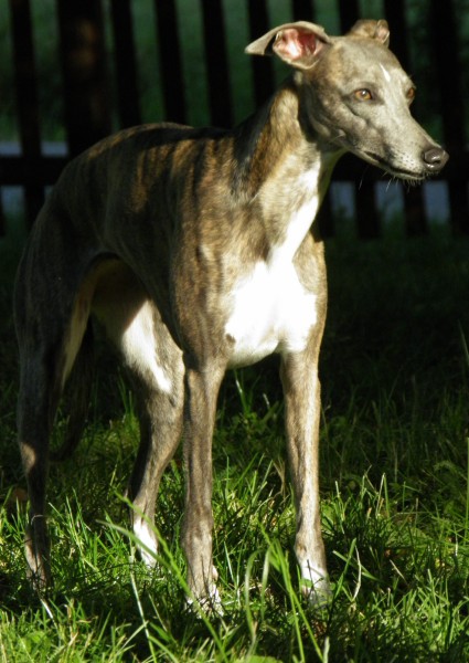 Éowyn ist eine typische Whippetdame: menschenfreundlich - aber zurückhaltend; sie ist mein Seelenkumpel (eigentlich sollte der Kennel dementsprechend "Soulmate's" heißen, hat aber Gerhard nicht gefallen), scheint mich permanent zu lesen wie ein Buch und reagiert entsprechend. Wir kommunizieren meist nur durch Blicke und sie hat mir gezeigt, wie aus Erziehung Beziehung wird und was es heißt, in einer liebevollen Führung zu leben. Natürlich musste auch Éowyn lernen, dass nicht alles erlaubt ist, was Whippchen sich einbildet (so war weder Telefonieren während Omas Mittagsschlaf gestattet, noch das Konsumieren von fangfrischen Chickenwings - dies waren natürlich Diskussionspunkte...) aber sie stellt niemals meine Führung in Abrede und akzeptiert ihre Grenzen. Ohne Konsequenz geht allerdings auch beim Whippet nichts und wer meint ohne Arbeit kommt Erfolg - Sorry ein Whippet ist kein Selbstläufer, auch wenn es für Außenstehende so wirken mag.