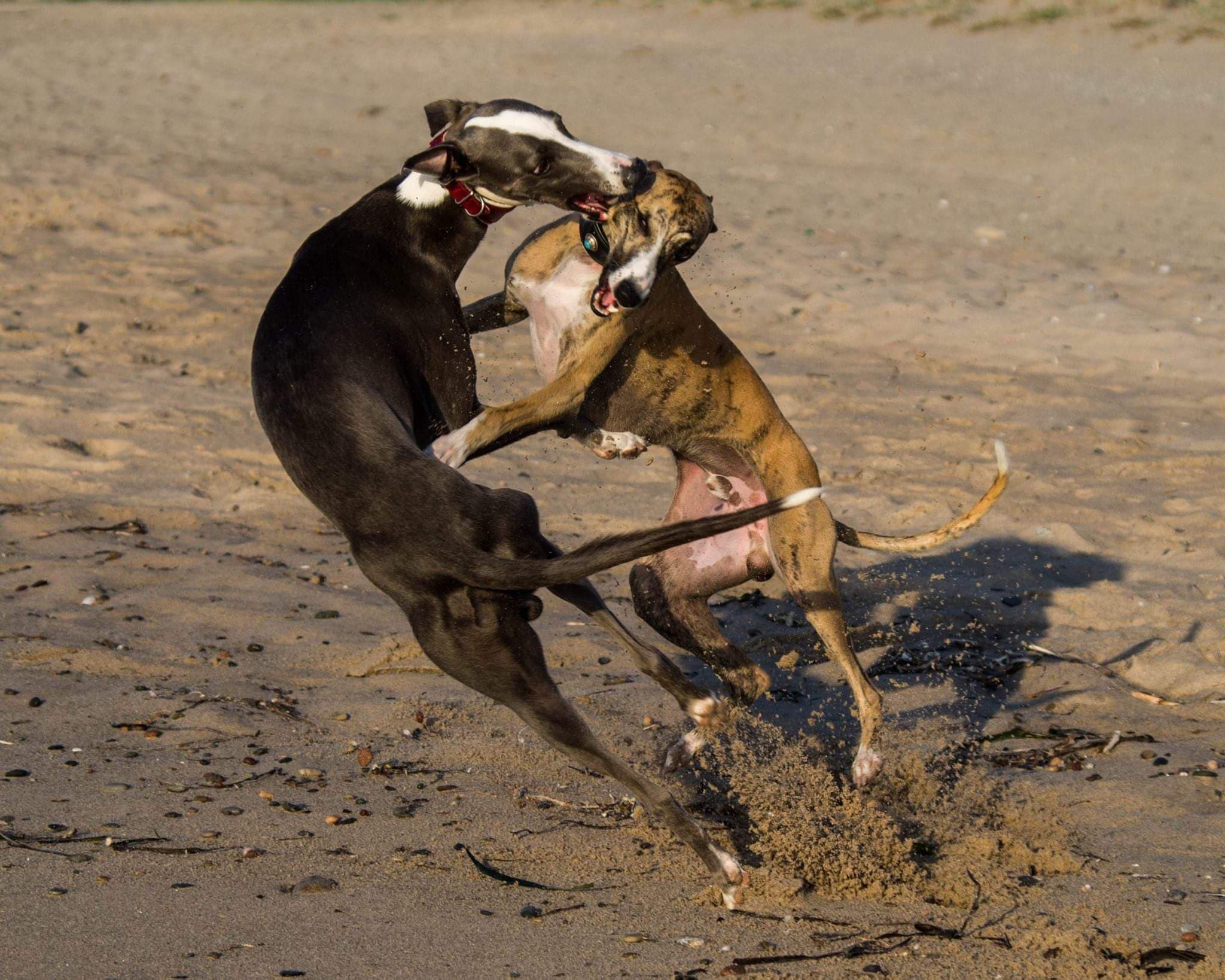Und Heike hatte Recht - Devon ist heute als "Erwachsener" ein totaler Schatz. Immer noch sehr gesprächig, aber sehr einfühlsam und mein Schmusebub Nr.1. Körperkontakt wird am liebsten bei mir gesucht, aber auch mit Bahron wird gekuschelt und geputzt was das Zeug hält. Er arbeitet gerne mit mir zusammen und er durfte natürlich seine Jagdleidenschaft im Coursing ausleben. Freilauf darf er Zuhause auch genießen und liebt es Ball zu spielen.. Draußen muss es halt wirklich Action sein.