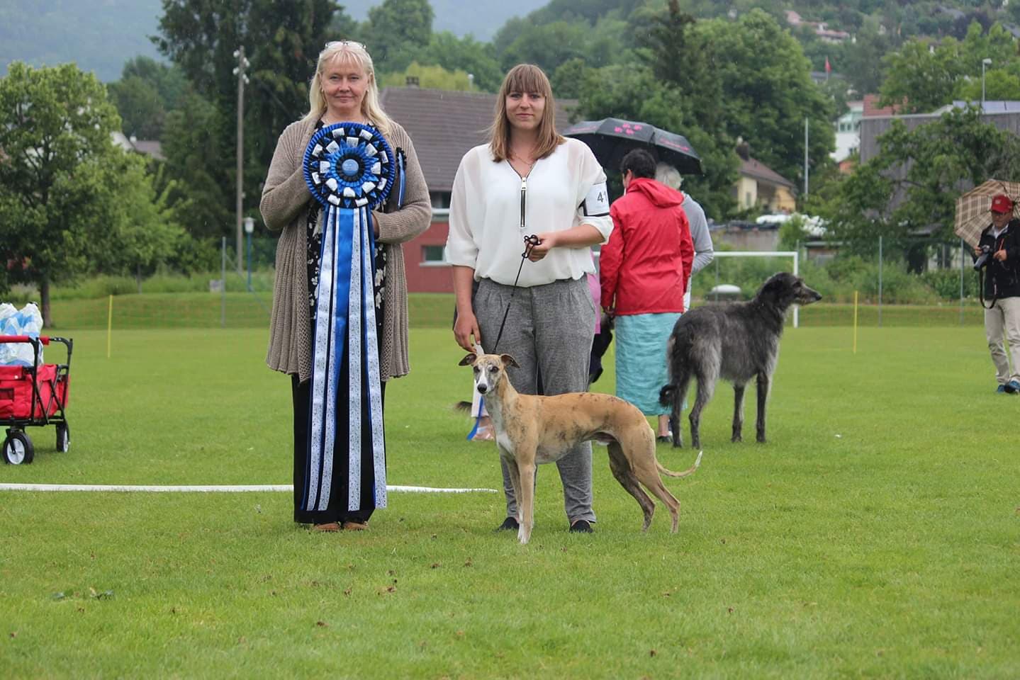 Zudem wurde er Sighthound of the Year - Kategorie bester Junghund der Whippetrüden und gewann schon seine erste BOS und Jugend Best in Shows. In der Schweiz beim Clubmatch bekam er sogar die Zusatzauszeichnung für das beste Gangwerk. Aber auch in der ZK, OK und GK brauchte er sich keinesfalls zu verstecken.