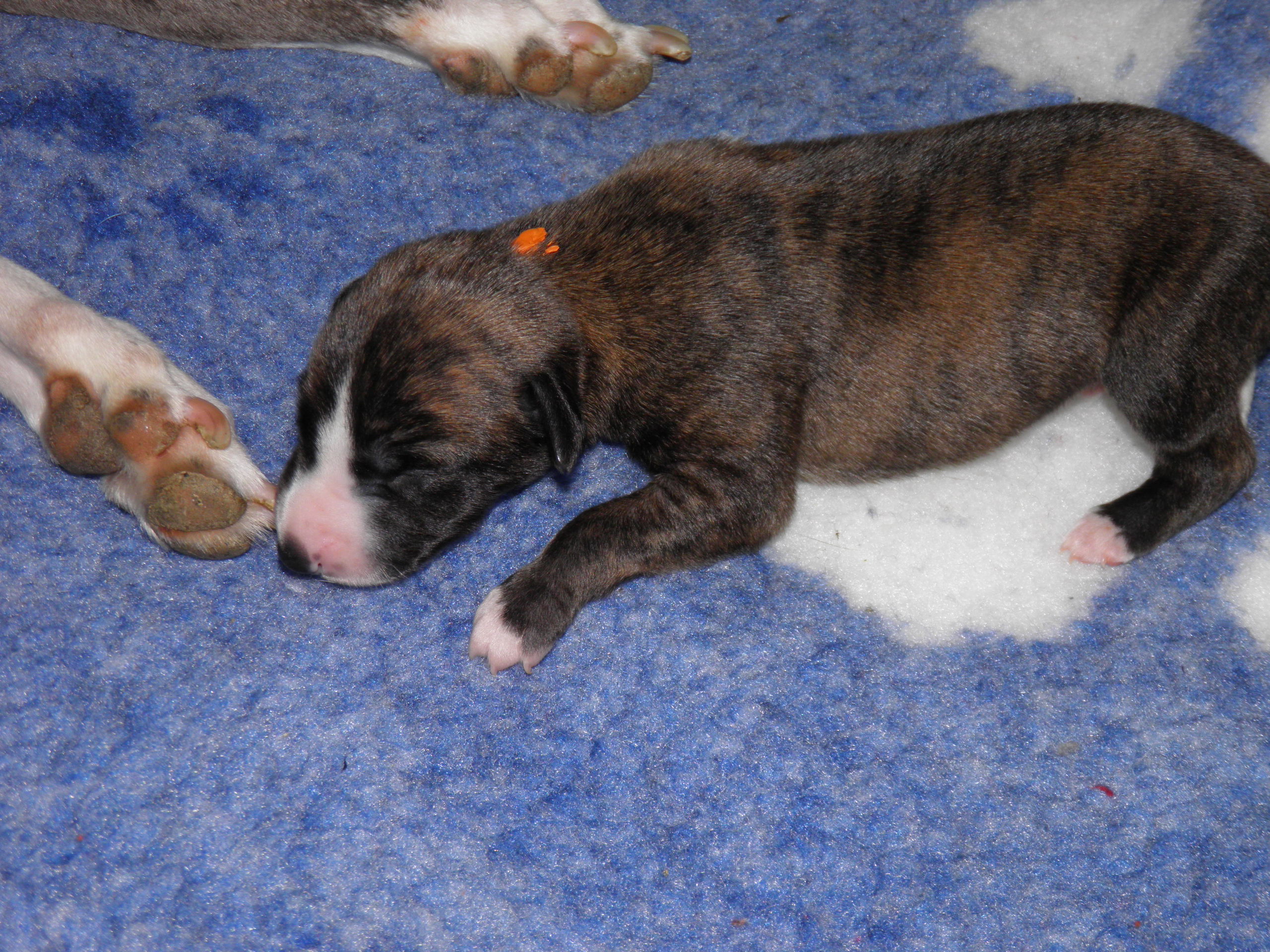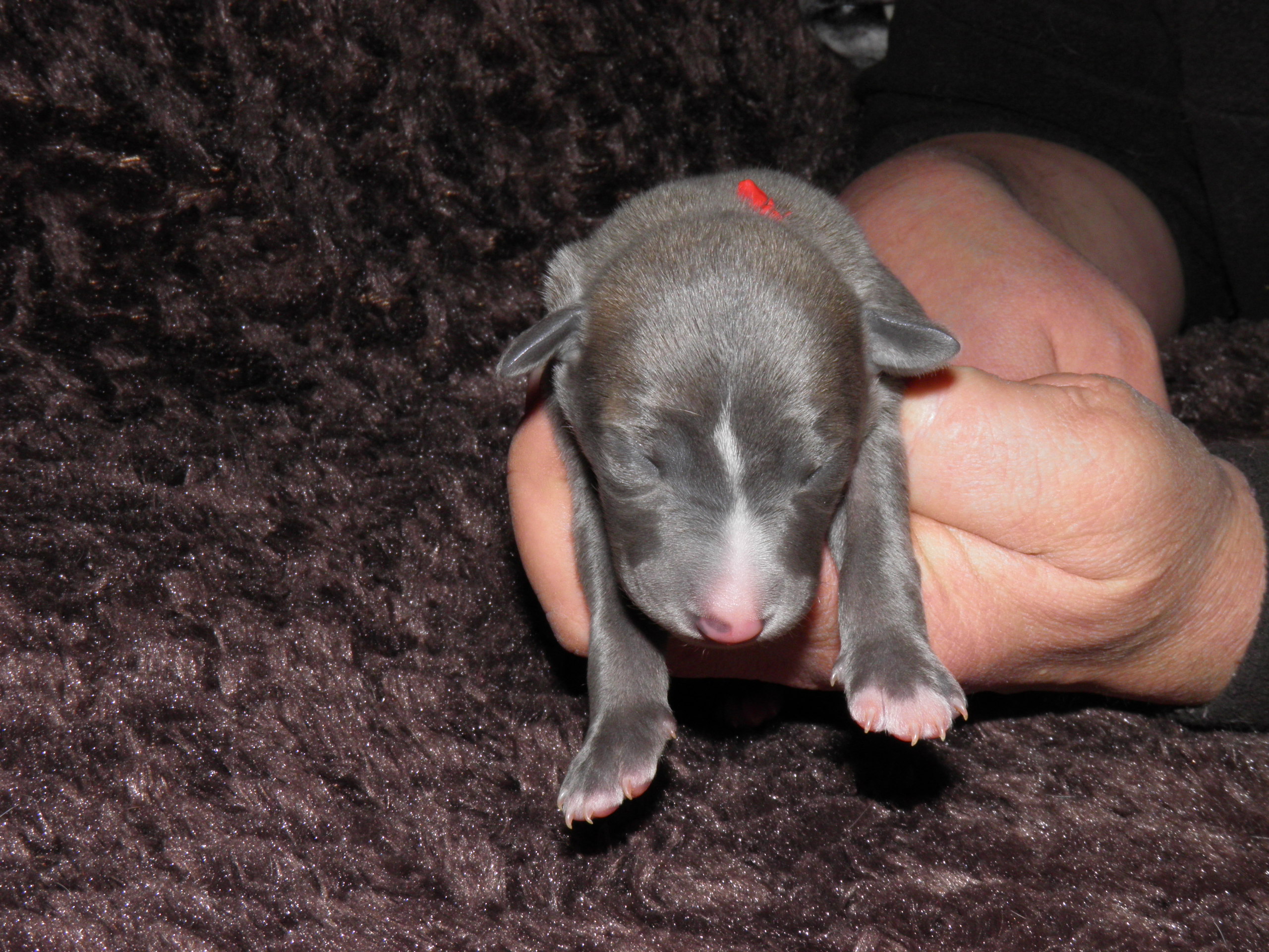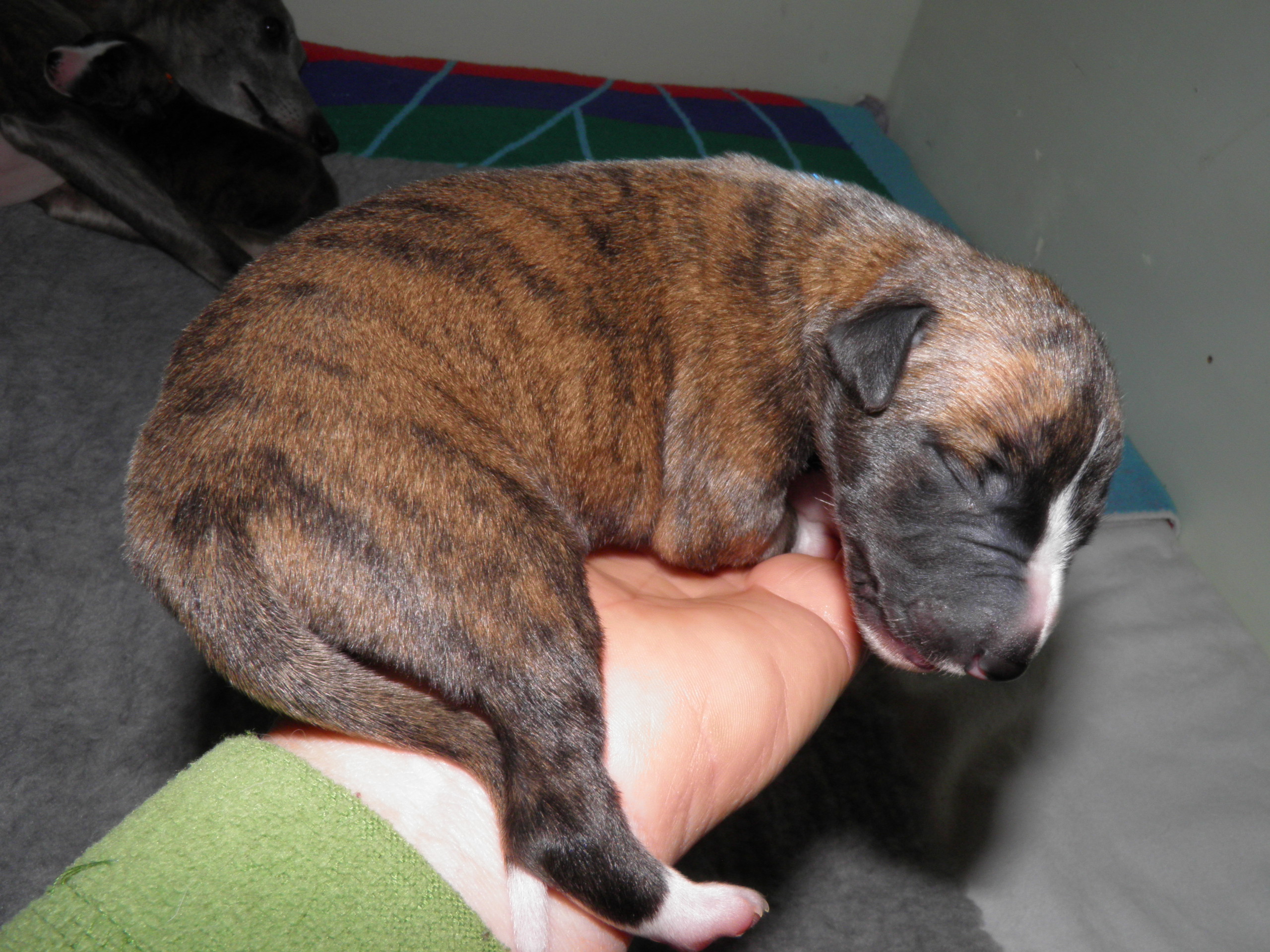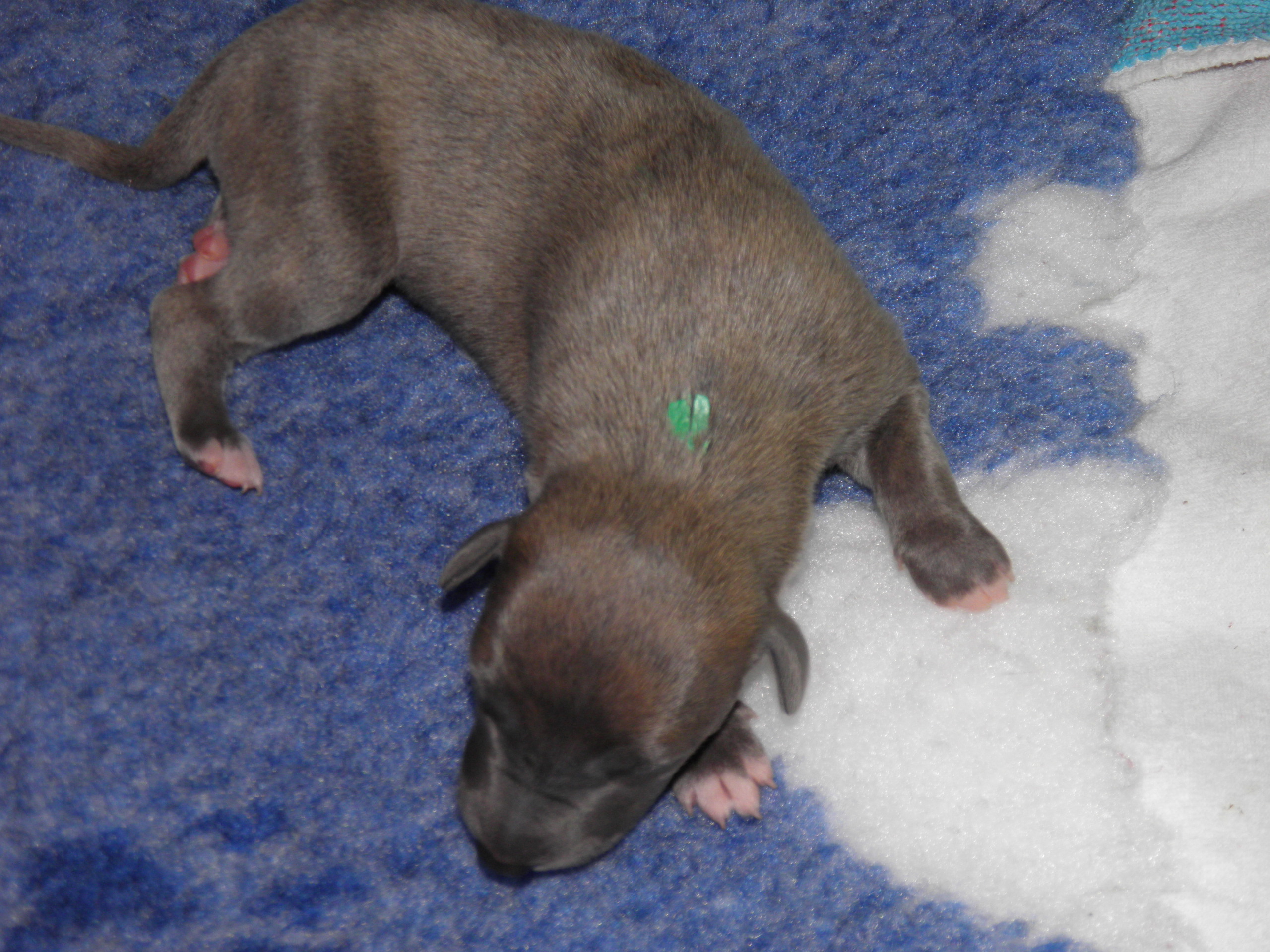 Der Pallid Dragon C-Wurf hat sich überaus gut entwickelt, so dass wir für den E-Wurf unsere Windmeister's Graceful Gloria ein weiteres Wir erwarten eine sehr bunte (gestromt, evtl. einfarbig oder gescheckt) Nachzucht - dies als Info für die Leute, denen die Farbe wichtig ist Gloria wurde am 12. & 13. März, in dessen Heimat Dänemark, von Newkins Shannon gedeckt. Gloria hat am 09.05.2018 in hoher Geschwindigkeit ihre 5 Welpen, vier Rüden und eine Hündin, zur Welt gebracht, dass man kaum mit Wiegen und Markieren hinterher kam. Es sind drei blaupigmentierte Rüden, davon ein wunderschöner leicht blaugestromter Mantelschecke, zwei Blauströmlinge mit weißen Abzeichen, ein schwarzgestromter Rüde und eine schwarzgestromte Hündin.